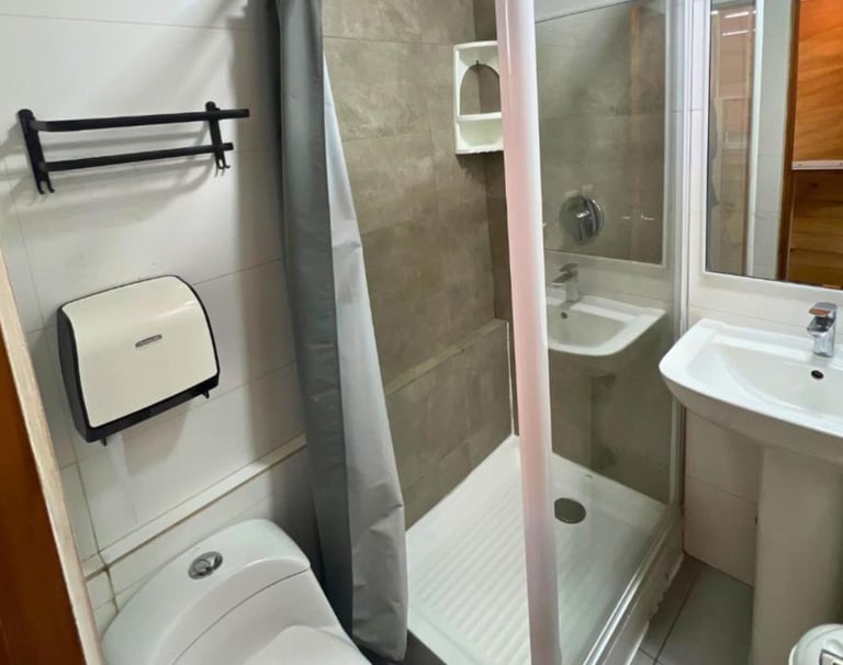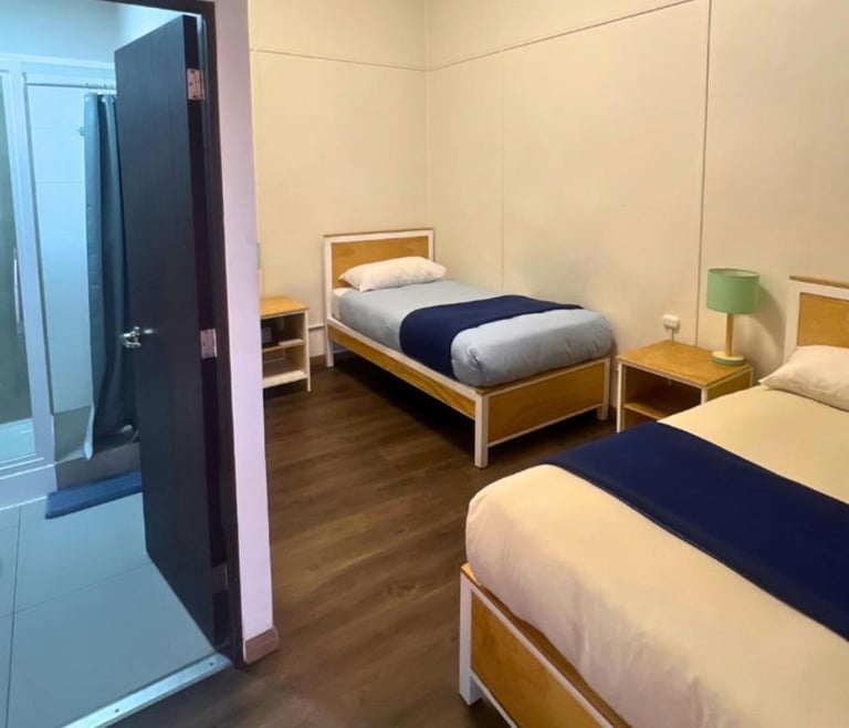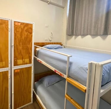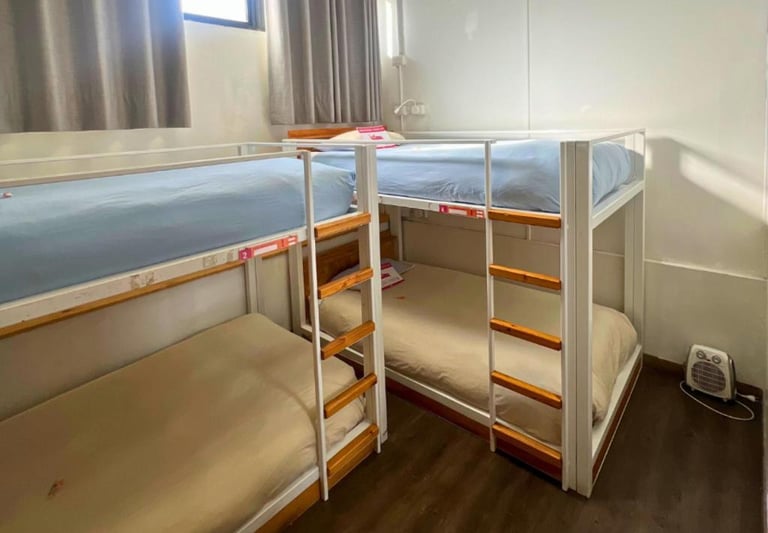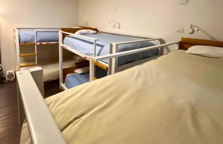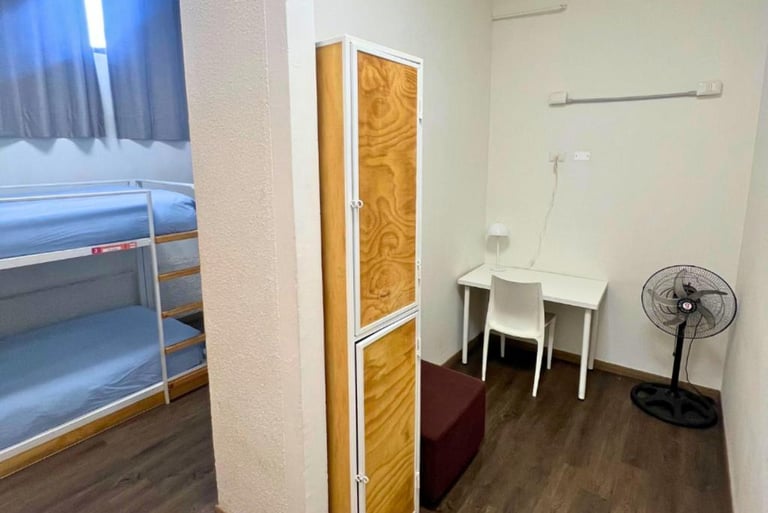 La habitación incluye un baño compartido equipado con ducha. La unidad tiene 4 camas.